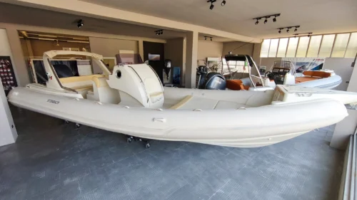 Gommone Stingher 800 8 mt con motore Yamaha F250 completamente accessoriato, utilizzato sul Lago Maggiore e rimessato sempre al coperto con carrello stradale.