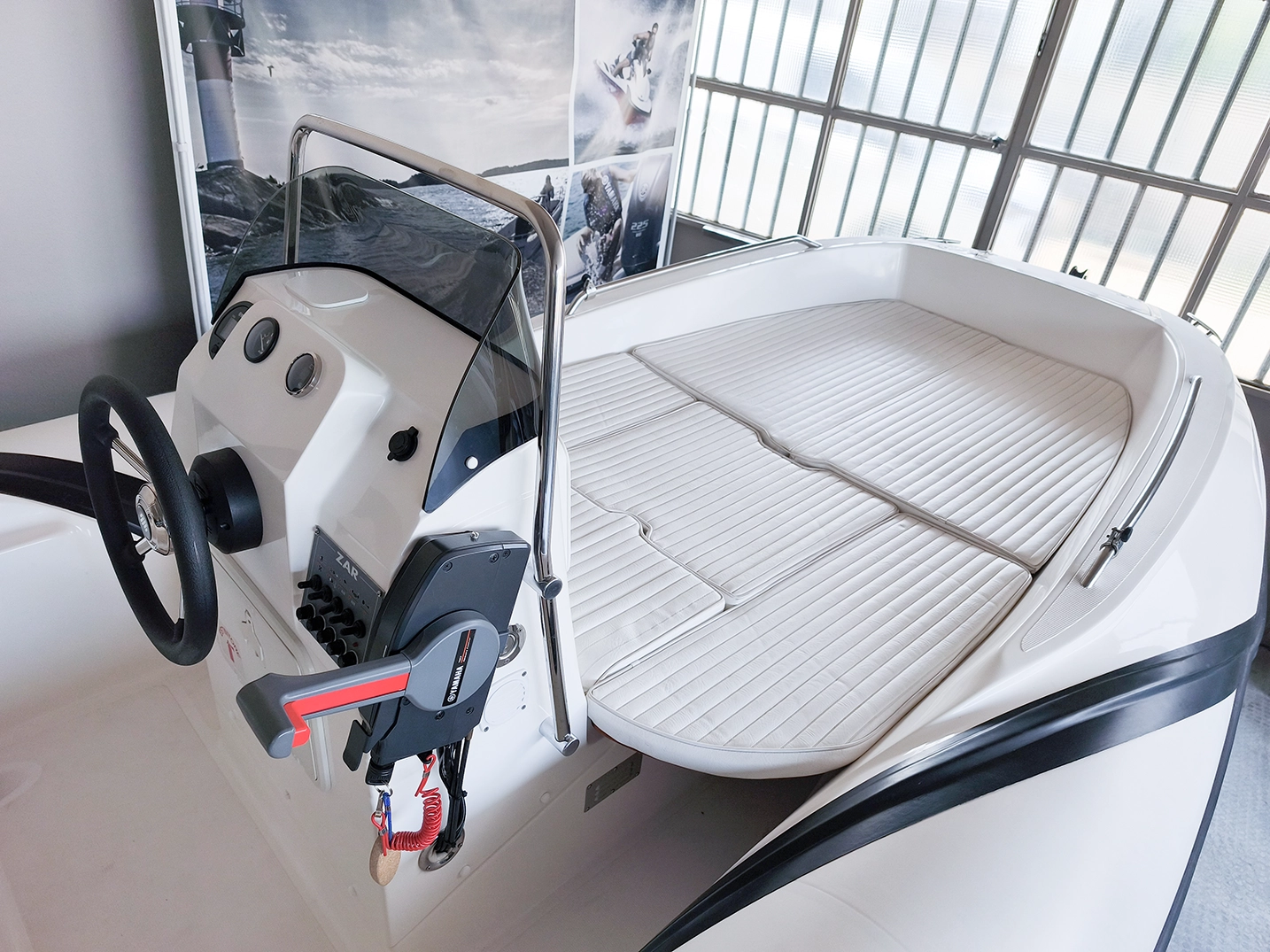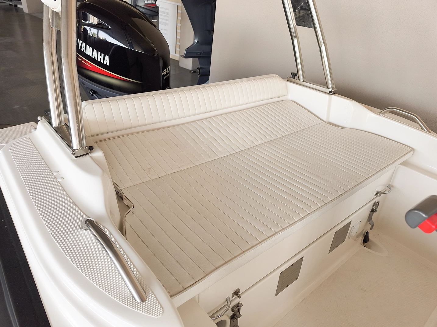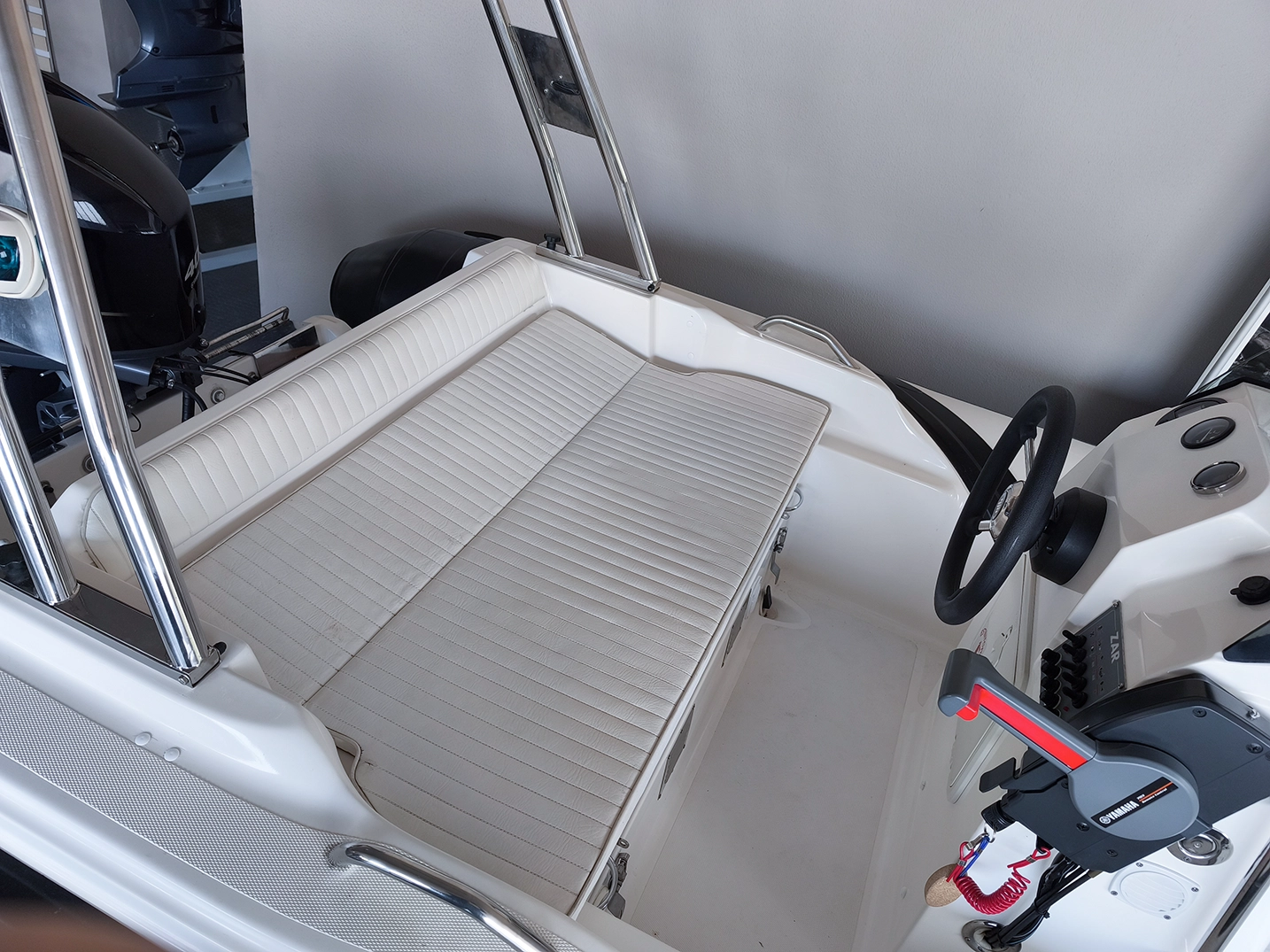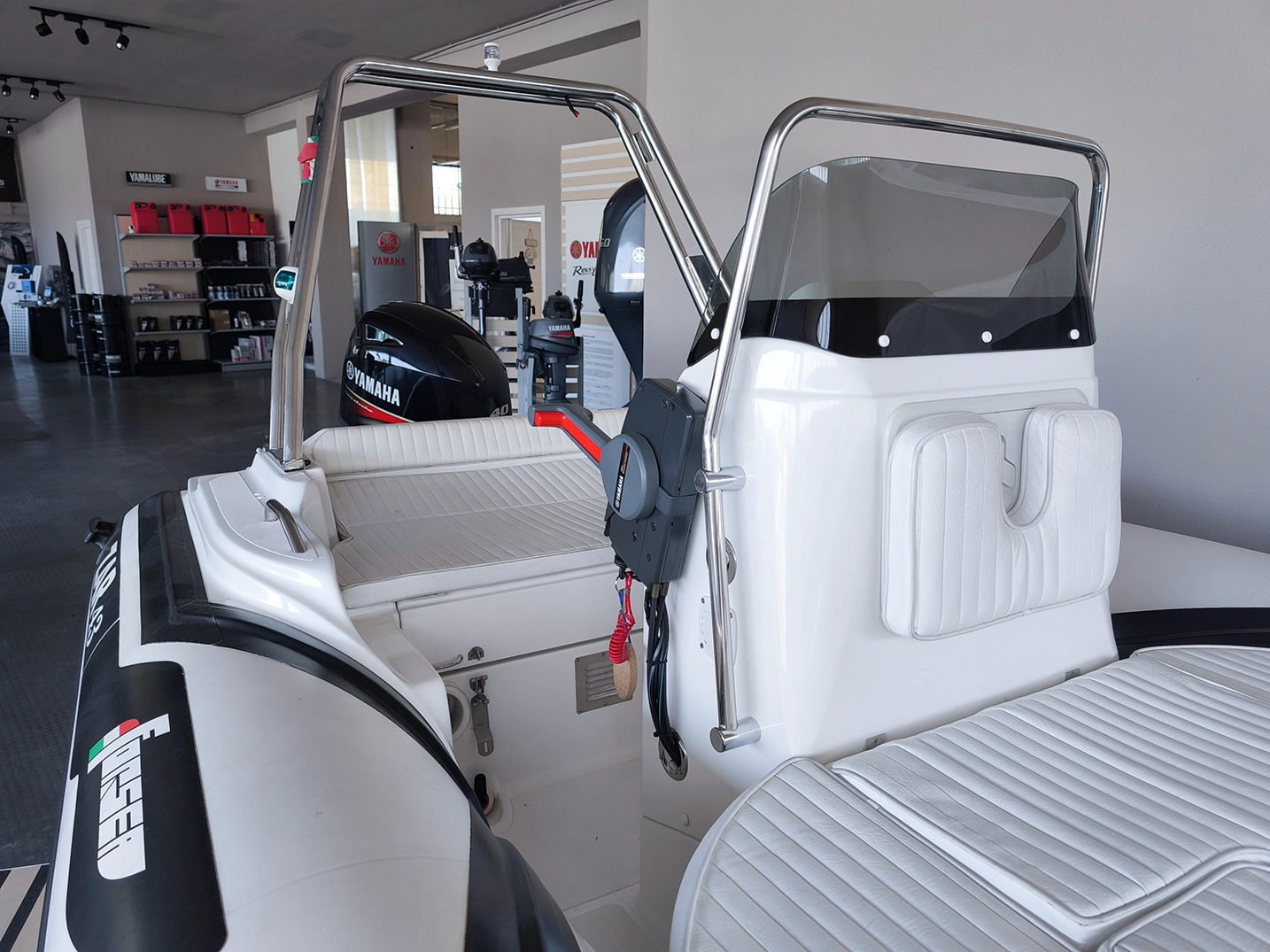 In dotazione ha: parasole, prendisole prua e poppa completo, rollbar, luci di via, doccia, pompa di sentina, tromba, presa USB.